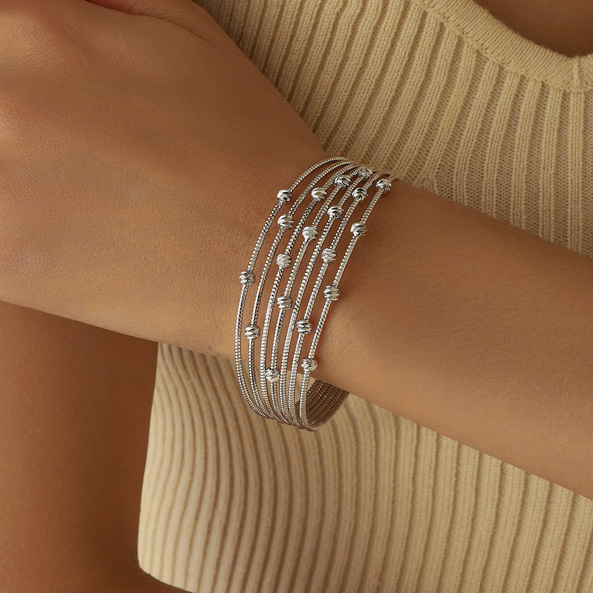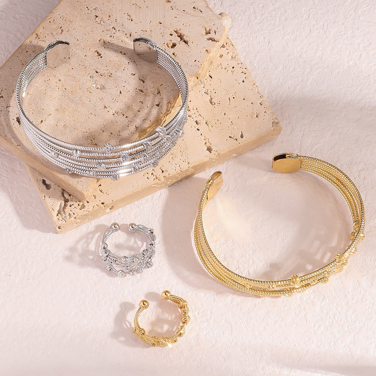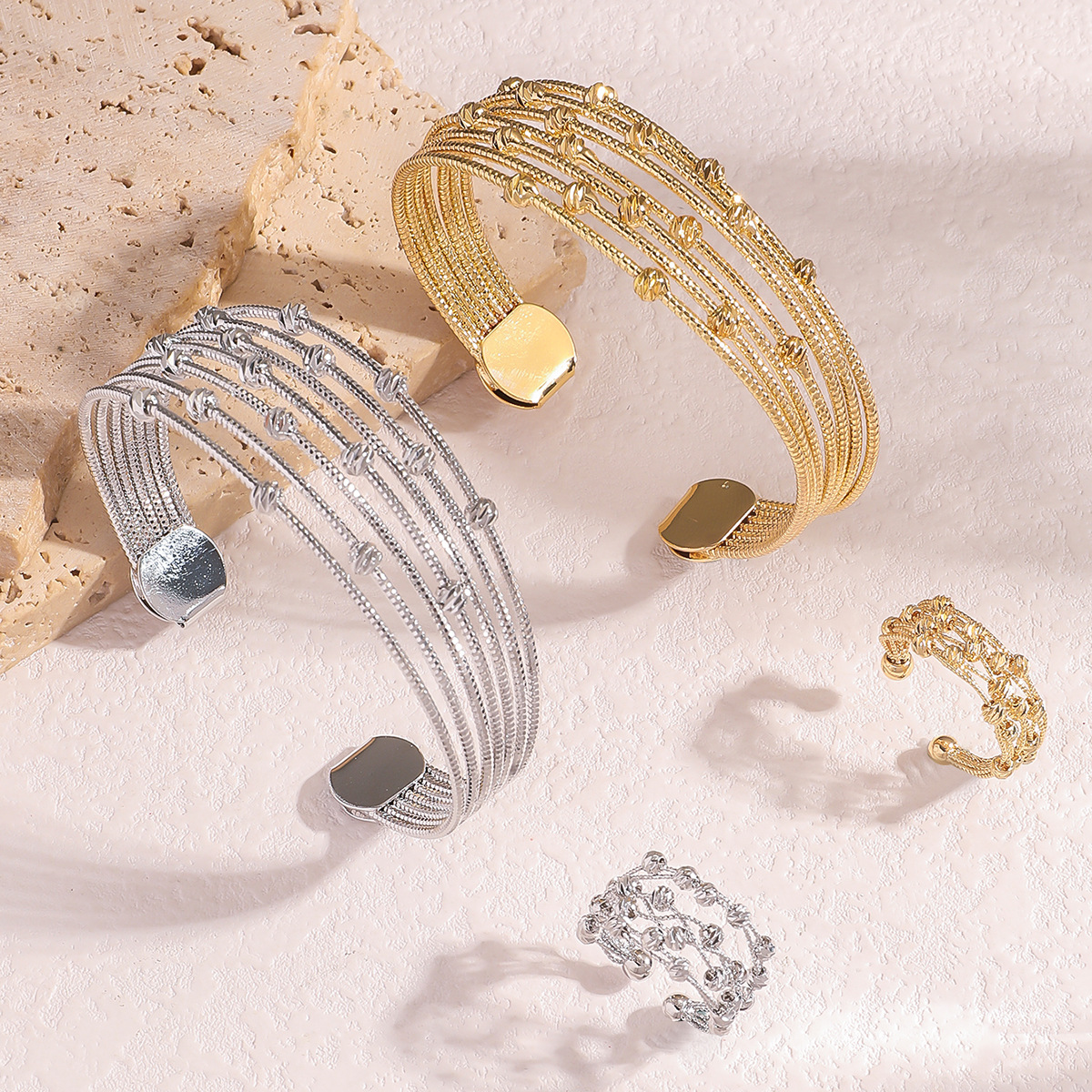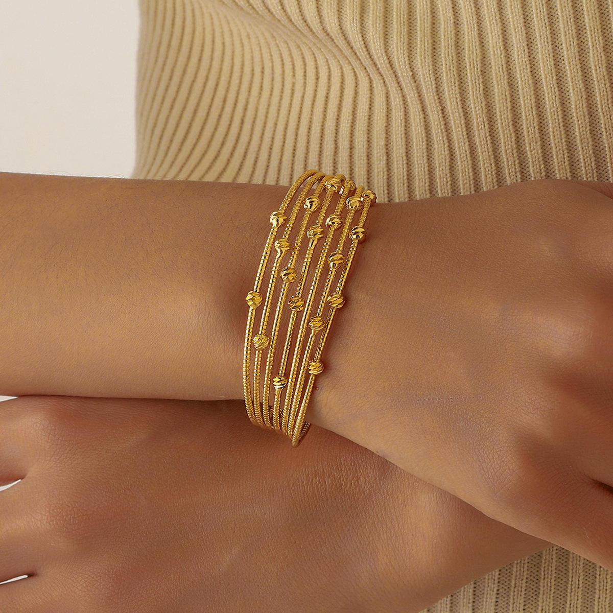 18K الذهب الخالص مطلي شخصية مزاجه أنيقة متعددة الطبقات تتداخل الرياح مجوهرات هندسية حبة الربط تصميم سوار الشعور