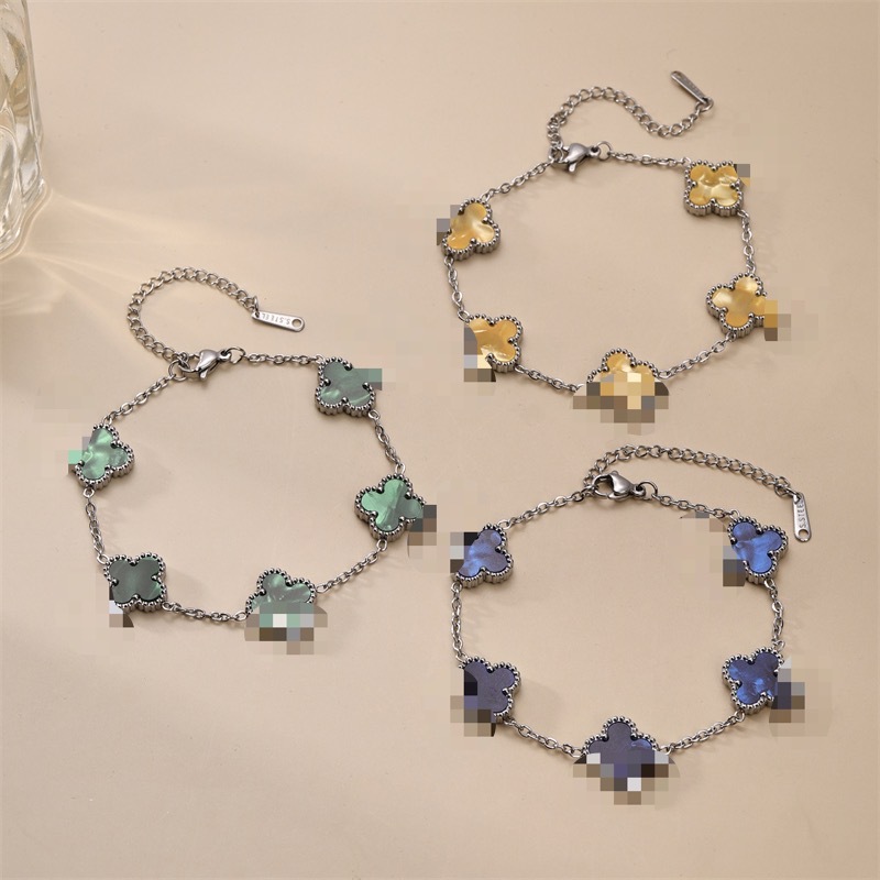انفجار عبر الحدود الفولاذ المقاوم للصدأ سوار البرسيم خمسة زهرة فراغ تصفيح 18K اتجاهات المجوهرات بالجملة