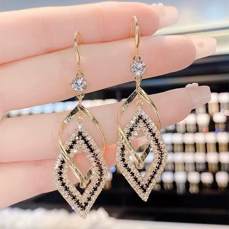 نمط جديد من الماس الأذن هوك ضوء ترف أقراط فاخرة شخصية المبالغة في الغلاف الجوي أقراط الأذن أنثى حساسة الراقية