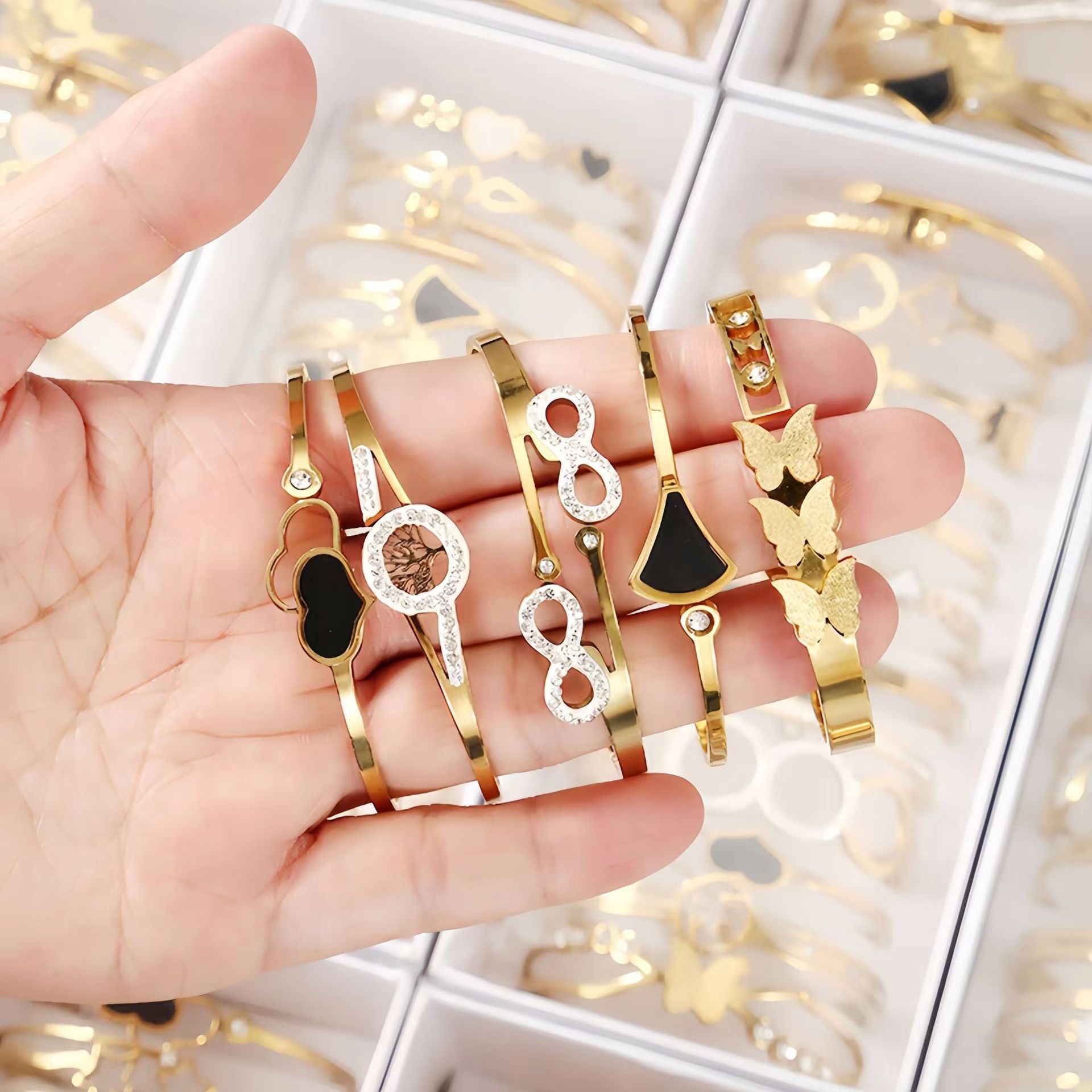 انفجار أزياء الأزياء الراقية الشعور الأزياء والمجوهرات أساور شخصية مختلطة دفعة عبر الحدود التيتانيوم الصلب المطلي بالذهب أساور أساور