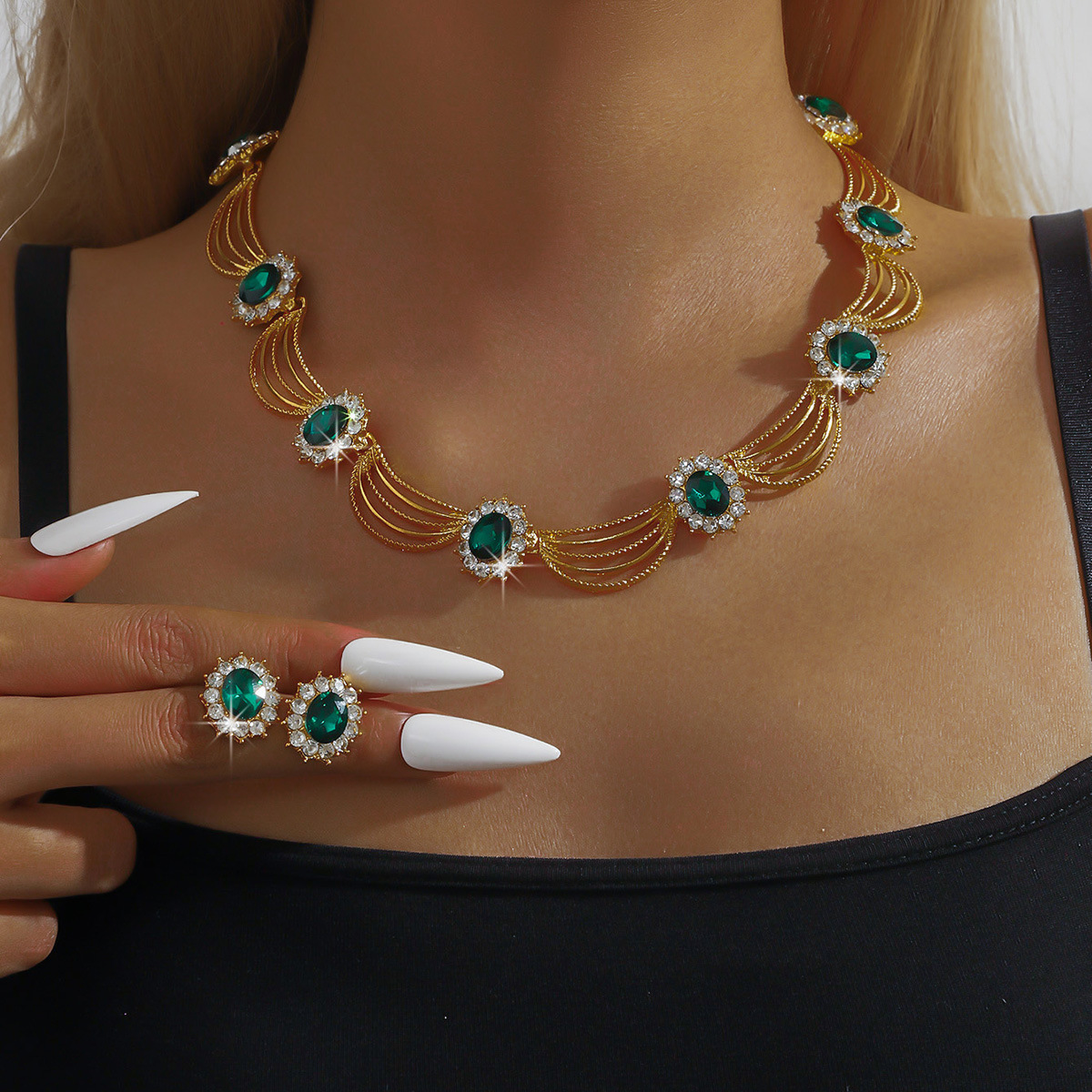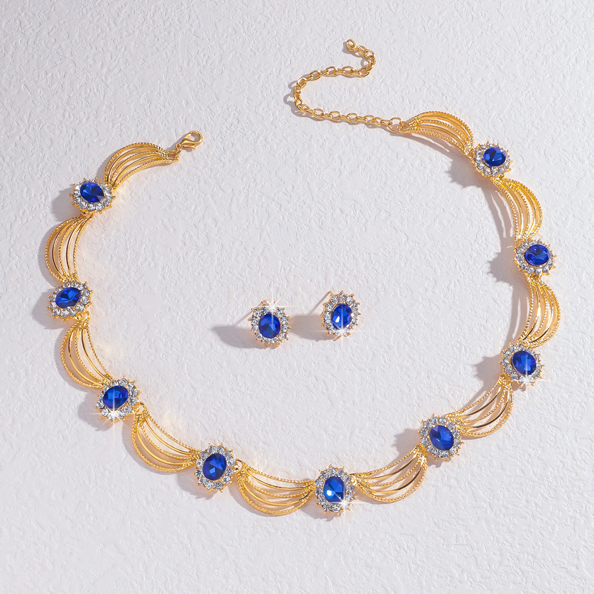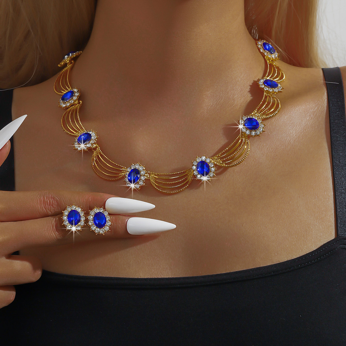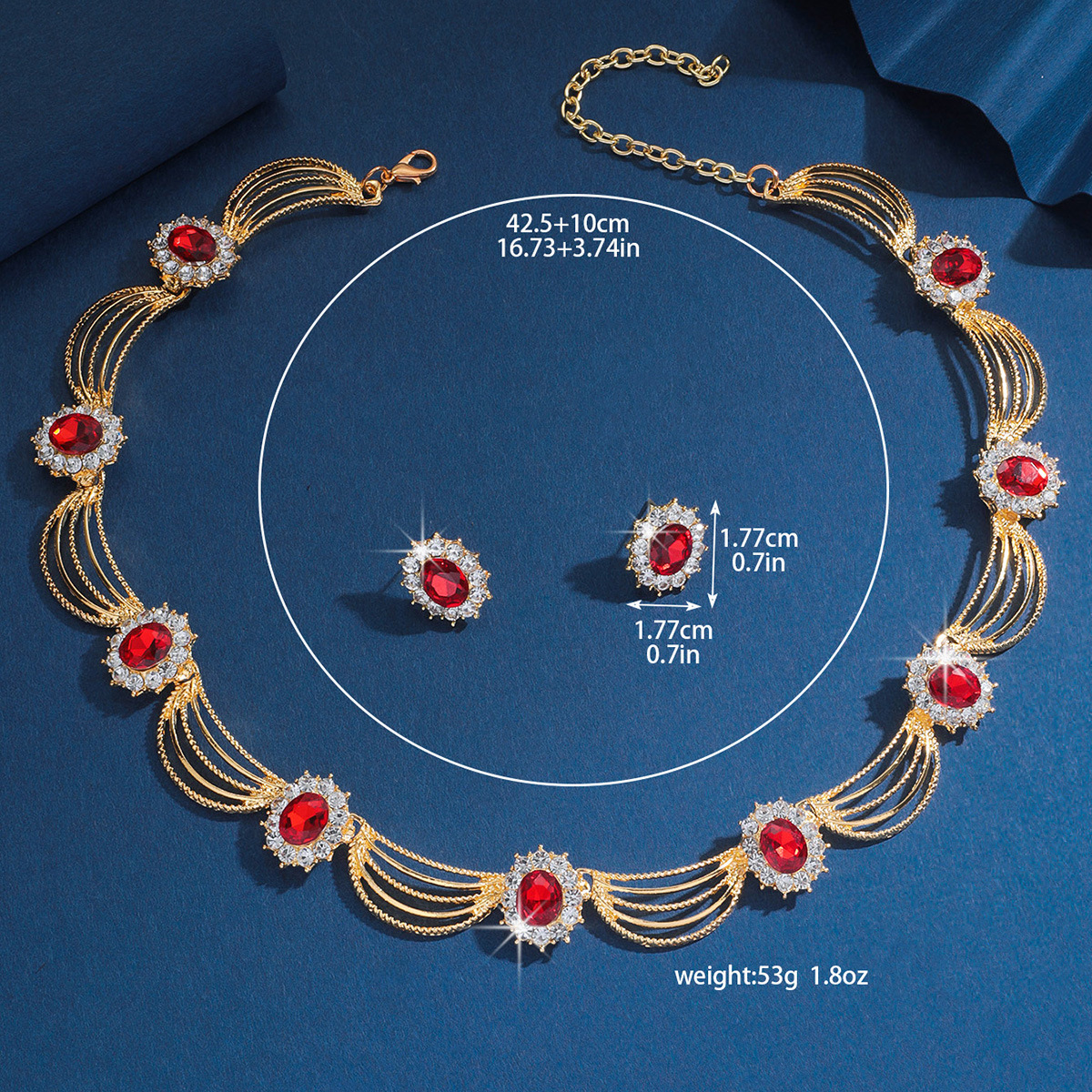 قصر الفن الرجعي مروحة جميلة على شكل شبكة الأحمر قلادة أقراط مجموعة انفجار الراقية في الغلاف الجوي سلسلة الترقوة