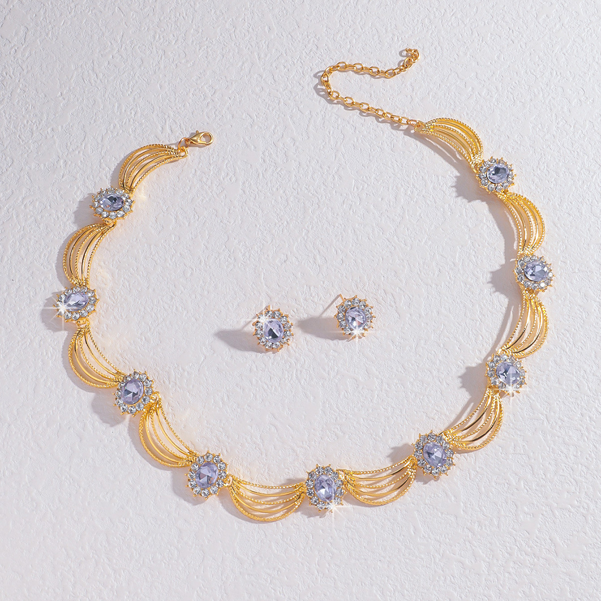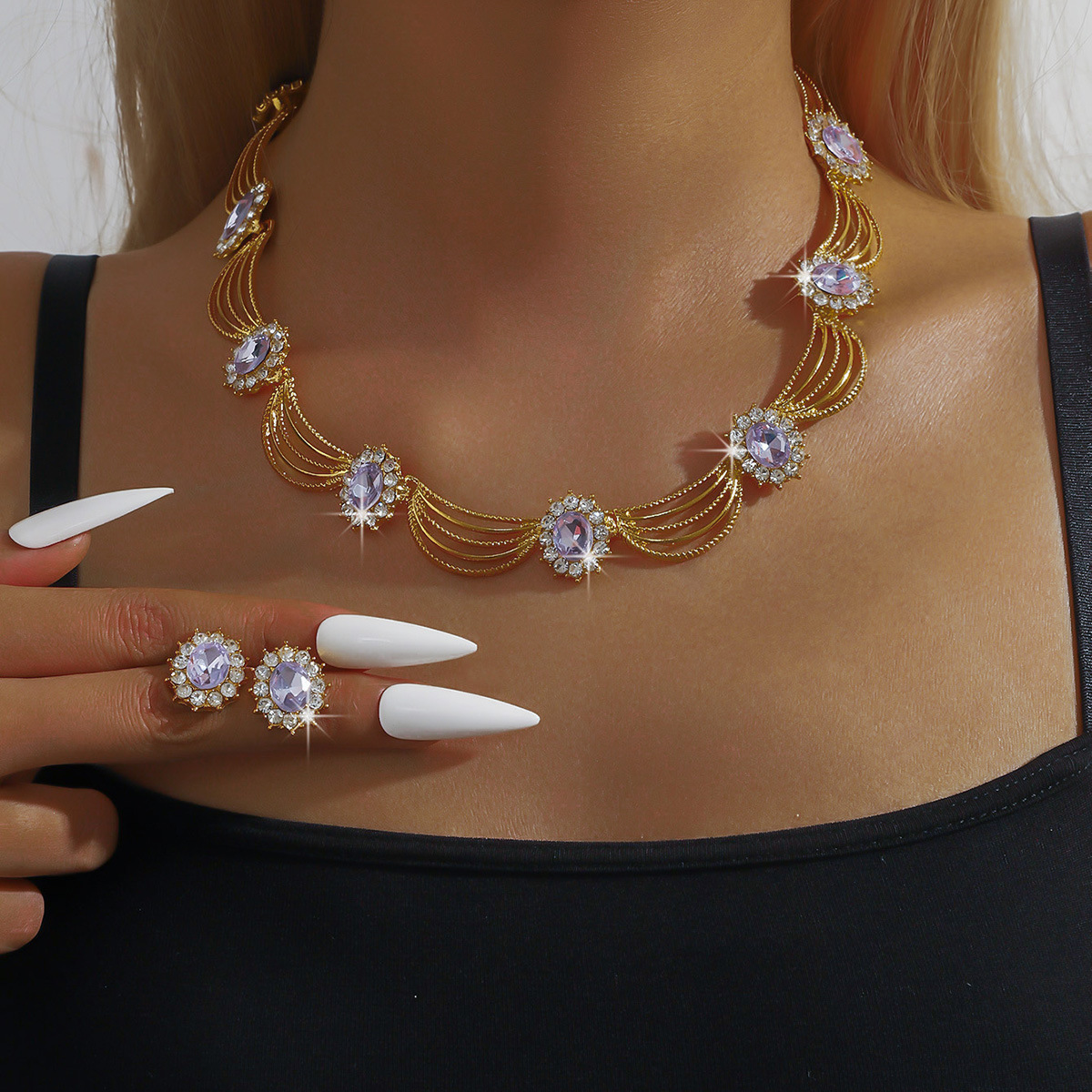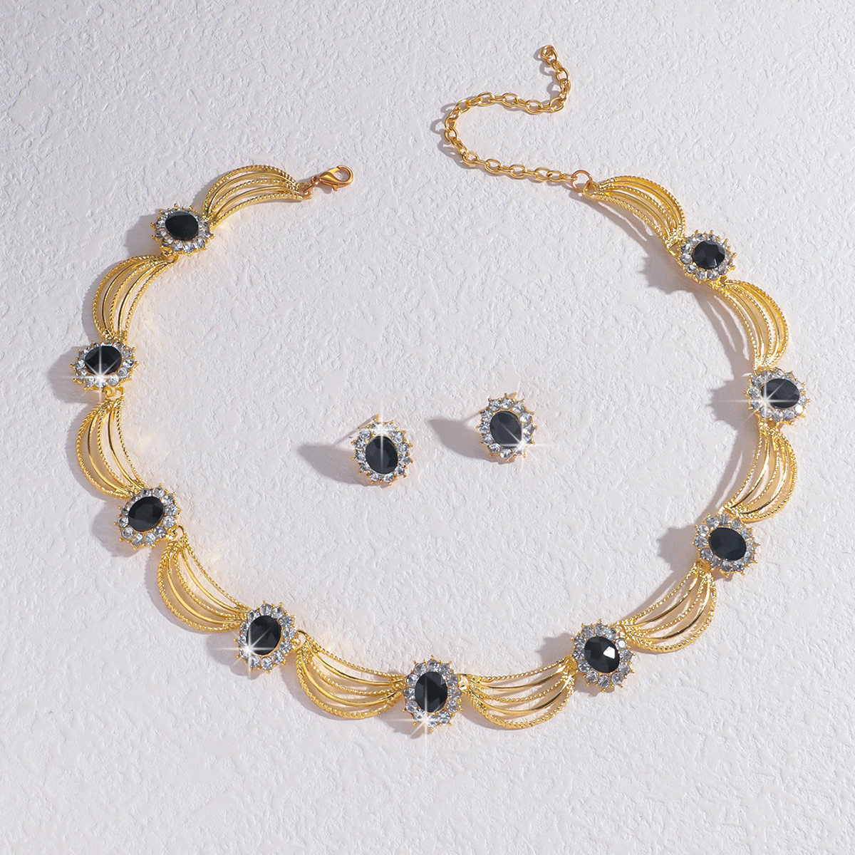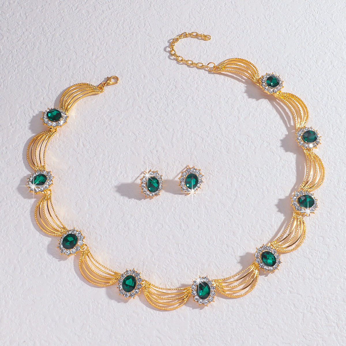قصر الفن الرجعي مروحة جميلة على شكل شبكة الأحمر قلادة أقراط مجموعة انفجار الراقية في الغلاف الجوي سلسلة الترقوة