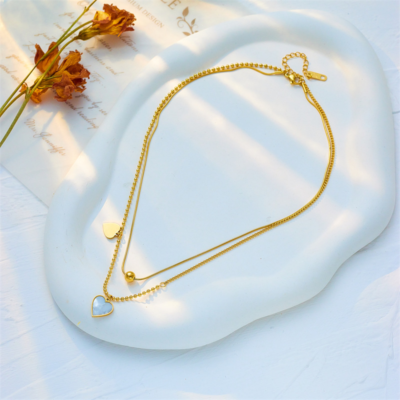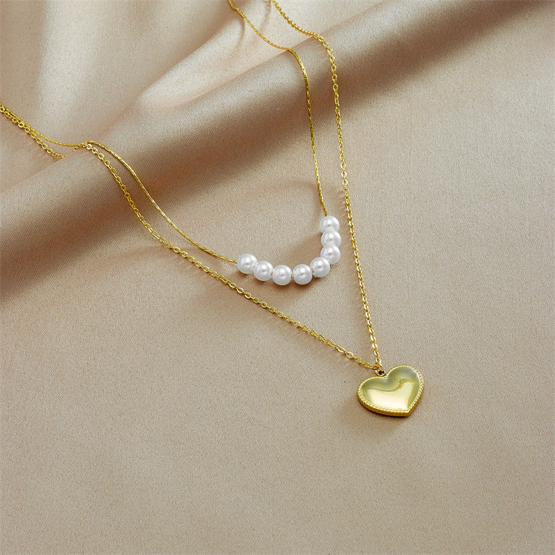أوروبا والولايات المتحدة عبر الحدود أزياء الرجعية مطلي بالذهب مزدوجة الطبقات تتداخل مع عناصر متعددة قلادة فراشة لؤلؤة جولة العلامة التجارية قلادة