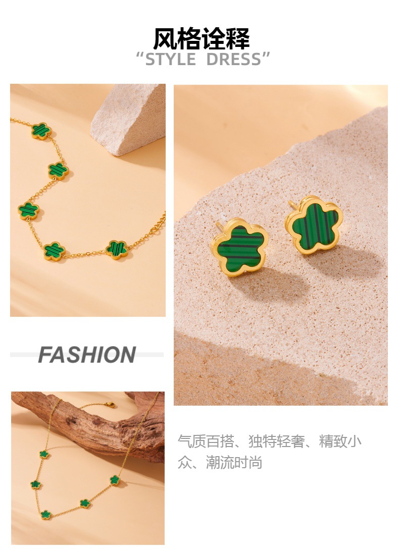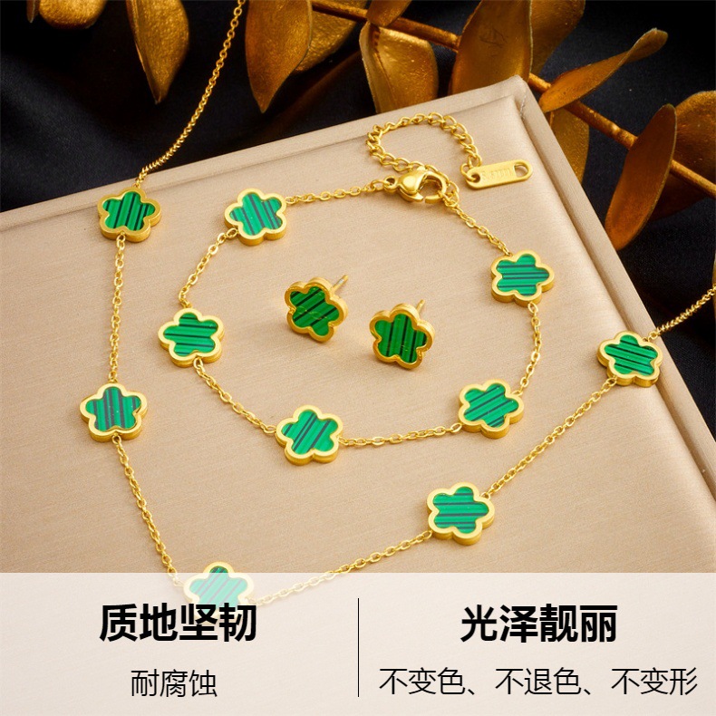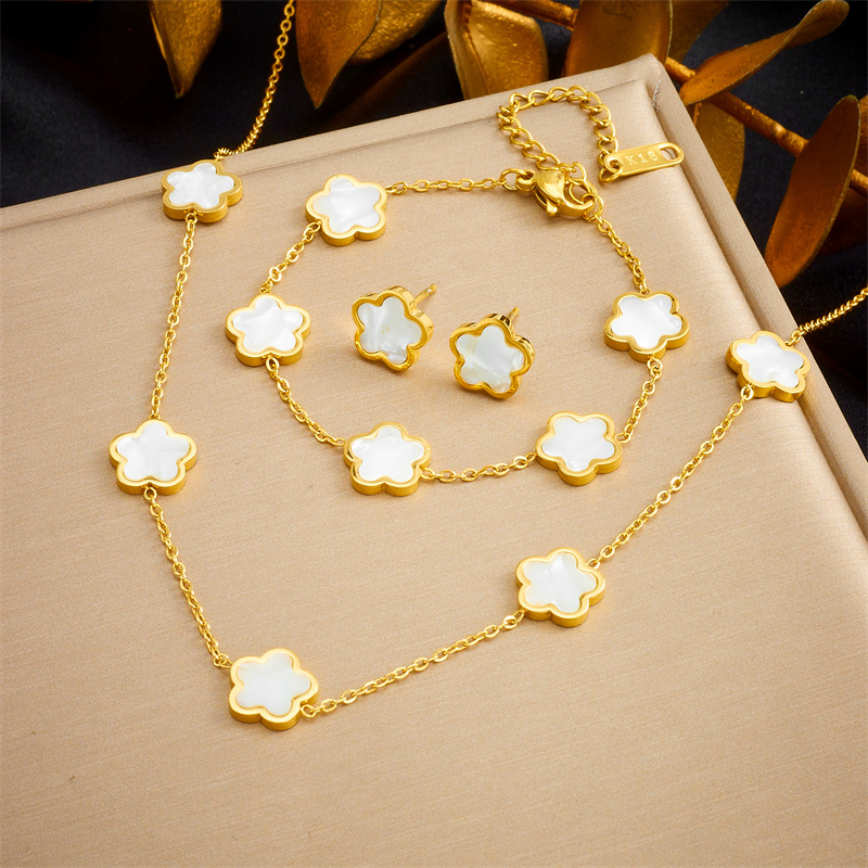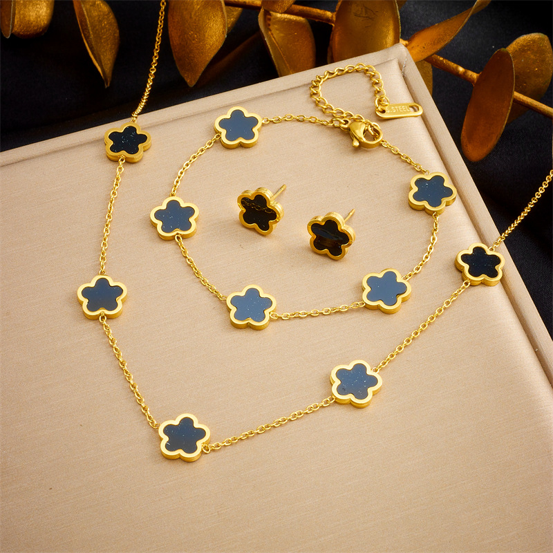 أوروبا والولايات المتحدة نمط مزاجه خمر زهرة الملحقات زهرة الفولاذ المقاوم للصدأ مطلية بالذهب أقراط سوار قلادة مجموعة من ثلاثة